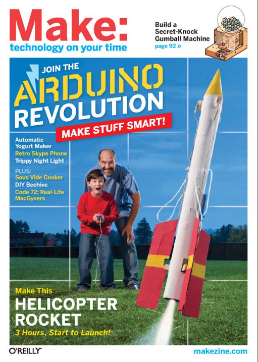 The first magazine devoted entirely to do-it-yourself technology projectspresents its 25th quarterly edition for people who like to tweak, disassemble, recreate,and invent cool new uses for technology. MAKE Volume 25 is all about the Arduino Revolution! Give your gadgets a brain! Previously out of reach for the do-it-yourselfer, the tiny computers called microcontrollers are now so cheap and easy to use that anyone can make their stuff smart. With a microcontroller, your gadget can sense the environment, talk to the internet or other hardware, and make things happen in the real world by controlling motors, lights, or any electronic device. The Arduino is an easy-to-use microcontroller board -- it's like an R&D lab on your kitchen table for prototyping any gadget. We show you how to make one, and how to use Arduinos and other microcontrollers to make an automatic yogurt maker, a vintage Skype telephone, a gumball machine that recognizes your secret knock, and more. Plus, make a Helicopter Rocket, gourmet Sous Vide food cooker, Reverse Geocache treasure box, and many more fun DIY projects.
